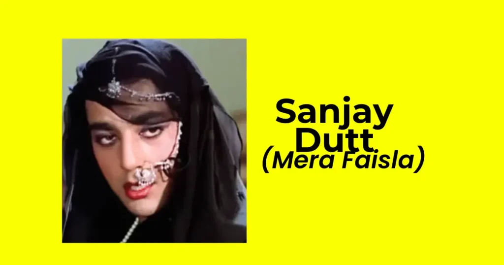 अब जरा सोचिए, संजय दत्त जैसा रफ टफ हीरो, जब औरत का रोल करे तो कैसा लगेगा? 1984 में आई फिल्म “मेरा फैसला” में उन्होंने यही किया। एक सीन में वो साड़ी पहनकर पूरी तरफ फ़ीमेल गेटअप में नजर आए थे, वो भी पूरे कॉन्फिडेंस के साथ। भले ही फिल्म सफल ना रही हो, मगर संजय दत्त का वो सीन 90s Bollywood Male Actors in Female Look उस दौर में काफी चर्चा में रहा था।
